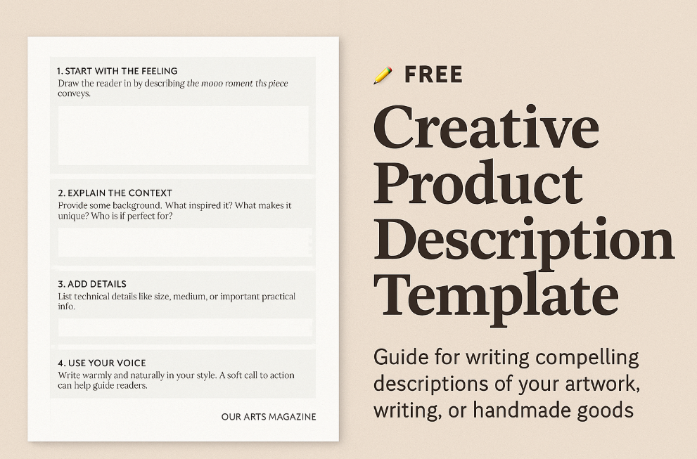 Struggle with writing listings or bios? This printable worksheet guides you step-by-step through writing compelling, heart-led descriptions for your artwork, writing, or handmade goods.